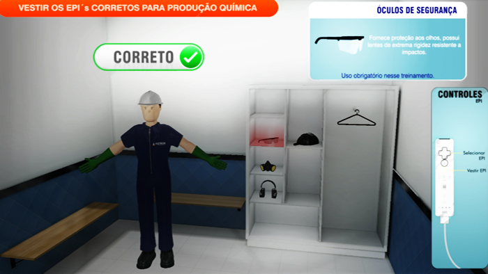 Desenvolvemos treinamentos virtuais de acordo com as necessidades do cliente, simulando situações cotidianas ou extremas, buscando a melhor absorção do conteúdo. Os treinamentos são produzidos de forma digital, abusando do poder e flexibilidade da computação 3D, sendo possível reproduzir situações perigosas e caras, sem causar danos para quem está sendo treinado ou ao meio ambiente. É possível treinar um funcionário a operar determinado equipamento sem ter que parar a produção, podendo repetir o treinamento quantas vezes for necessário, sempre medindo os resultados obtidos e documentando todo o processo de aprendizagem.